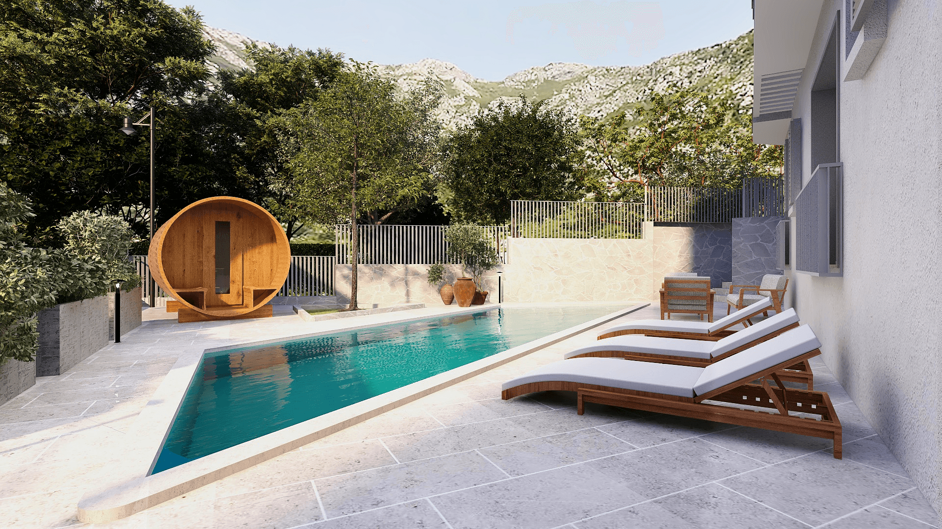 Rhizon Trinity to przemyślany kompleks apartamentowy w Risan, zaprojektowany w strukturze P+1+loft, łączący współczesną architekturę z naturalnym krajobrazem Zatoki Kotorskiej i położeniem zaledwie 150–200 m od morza, co zapewnia codzienny dostęp do nadmorskiego stylu życia oraz komfort zamieszkania przez cały rok lub w modelu inwestycyjnym najmu wakacyjnego. Projekt obejmuje trzy budynki na działce ok. 2 673 m², łącznie 32 mieszkania: 30 z jedną sypialnią oraz 2 z dwiema sypialniami, z 25 miejscami parkingowymi oraz funkcjonalnymi układami i metrażami od ok. 49 m² do ok. 59 m² w jednostkach jedno sypialnianych. Architektura elewacji łączy okładzinę kamienną parteru z pionowymi akcentami drewnianymi przy lukarnach i tarasach, co tworzy współczesny, a zarazem ciepły, śródziemnomorski charakter oraz podnosi walory estetyczne inwestycji w jej nadmorskim kontekście krajobrazowym. Zastosowane materiały, staranność obróbek i nowoczesna specyfikacja techniczna (w tym pełna automatyzacja) podnoszą komfort użytkowania, trwałość i efektywność energetyczną, umożliwiając zdalne zarządzanie parametrami mieszkania oraz dopasowanie ustawień do stylu życia domowników. Części wspólne zaprojektowano jako pełnowartościowe zaplecze rekreacyjno‑usługowe: recepcja na pierwszym poziomie dla całego kompleksu, odkryty basen, sauna zewnętrzna oraz kącik dla dzieci, a całość uzupełniają ogrody i zachowane naturalne obszary roślinności, co kreuje kameralną atmosferę kurortową w skali mikro. Wybrane mieszkania dysponują ekspozycjami „sea view”, a układy z jedną sypialnią obejmują m.in. typy o powierzchniach 49,12 m², 54,27 m², 59,22 m² oraz warianty z poddaszem 52,51–58,04 m², przy czym część metraży podawana jest łącznie z tarasami zgodnie z rzutami technicznymi. Lokalizacja w Risan – historycznej części gminy Kotor wpisanej w krajobraz UNESCO Zatoki Kotorskiej – zapewnia bliskość plaż, marin i zabytkowych centrów (Perast, Kotor), a jednocześnie dogodny dojazd do usług, handlu i głównych tras nadadriatyckich, co sprzyja zarówno zamieszkaniu, jak i wynajmowi sezonowemu. Zakres cenowy oraz zwolnienie z 3% podatku od przeniesienia własności przy zakupie od pierwszego właściciela czynią ofertę konkurencyjną w segmencie nowych projektów w Zatoce Kotorskiej.