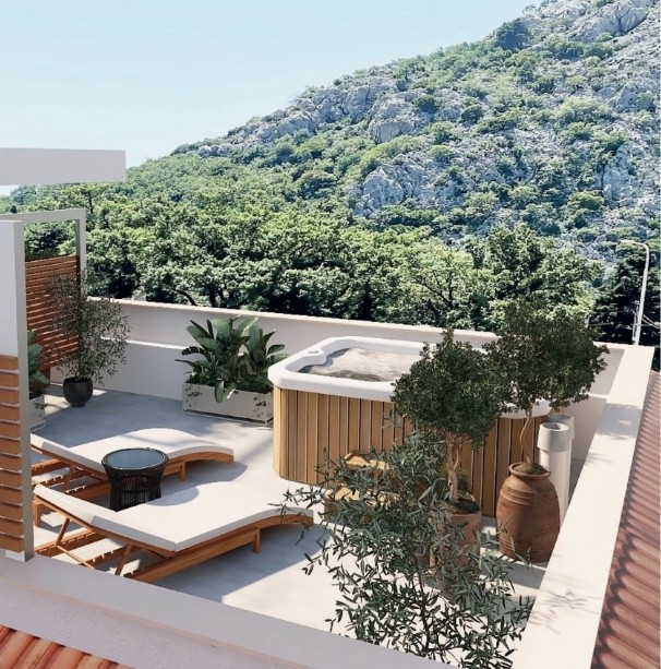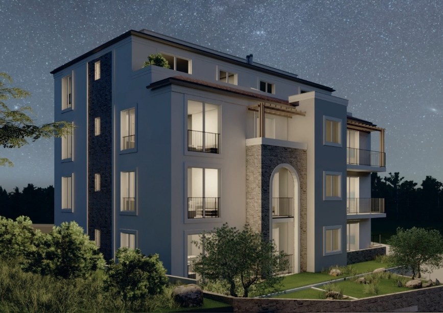 Torre a Cona to butikowy kompleks apartamentów w Sutomore (Bar), zaprojektowany jako nowoczesny budynek z garażem podziemnym, reprezentacyjną recepcją i bogatą strefą relaksu: SPA & Wellness (sauna fińska i hammam), basenem zewnętrznym oraz prywatnymi tarasami dachowymi przypisanymi do apartamentów penthouse na III piętrze. Architektura łączy śródziemnomorski charakter – elewacje z cofniętą ostatnią kondygnacją, okładzinę kamienną akcentującą łuki wejściowe, tradycyjne dwuspadowe dachy i pergole na tarasach - z nowoczesnym standardem wykończenia i funkcjonalnymi rzutami mieszkań. Plan apartamentów obejmuje 12 jednostek: 4 studia, 4 apartamenty z 1 sypialnią oraz 4 z 2 sypialniami, z metrażami zoptymalizowanymi pod całoroczne użytkowanie i wynajem wakacyjny; większość układów 1–2 sypialnie posiada ekspozycje z widokiem na morze i wygodne balkony/tarasy, a najwyższe piętro oferuje duże tarasy oraz wydzielone rooftopy. Wykończenia przewidują ciepłe podłogi drewniane, dopracowane detale ścienne i rozwiązania „smart‑home”, które umożliwiają zdalne zarządzanie komfortem i bezpieczeństwem lokalu, wpisując inwestycję w segment premium w rejonie Bar–Sutomore. Zaplecze dla mieszkańców obejmuje recepcję z obsługą i utrzymaniem 24/7, strefę SPA (sauna/hammam), basen zewnętrzny oraz zadaszone i nasłonecznione przestrzenie wypoczynkowe; funkcję parkingową zapewnia garaż podziemny, uzupełniony o 5 stanowisk naziemnych na terenie działki 1.170 m², położonej przy głównej arterii, w zasięgu pełnej infrastruktury Sutomore z krótkim dojazdem do centrum Bar i wybranych plaż.